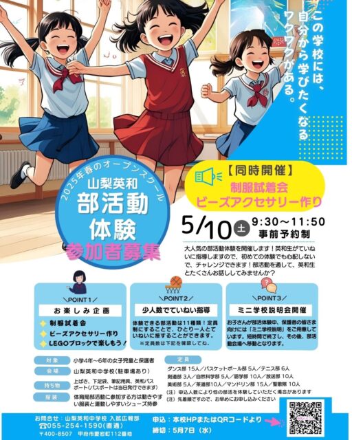 満席となりました! 5/10開催『第1回 中学オープンスクール★部活動を体験しちゃおう★』
