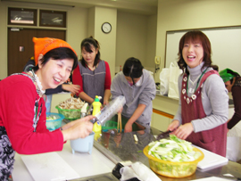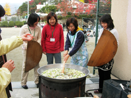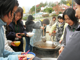 11月23日、勤労感謝の日に、中学一年の親子親睦会を行いました。初めての試みという事で、「芋煮会」と「キックベース」「親子二人三脚」等レクレーションをしました。芋煮会の本場、山形出身の平石教頭先生・加藤摩耶子先生のご指導の下、幹事さんを中心に準備し、味噌味・醤油味の芋煮が出来上がりました。親も子も一緒においしくいただき、身も心もほっこりと暖まりました。 「キックベース」は、クラス対抗のトーナメントでした。子ども達は真剣で、お母さん達も、思わず大声で応援し、お母さん同士の仲間作りのきっかけにもなったようです。「今まで話した事のないお母さんともお話ができてよかった。」「子どもがグループの中でどんな風にやっているのか、様子がみられてよかった。」などの声も聞かれ、有意義な一日となった様です。 休日の貴重な時間を割いてご協力下さった先生方・ 保護者の皆さん・生徒さん、本当にありがとうございました。 中1 P 望月杏子 |