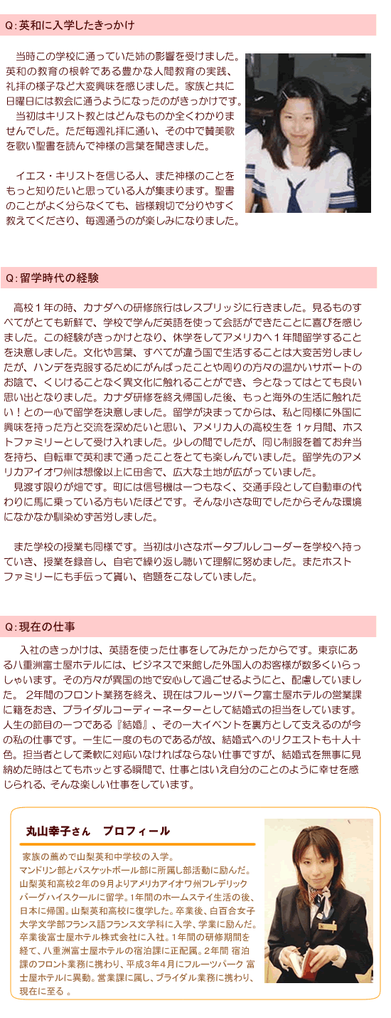 第2回 丸山 幸子 さん (1997年度卒業)