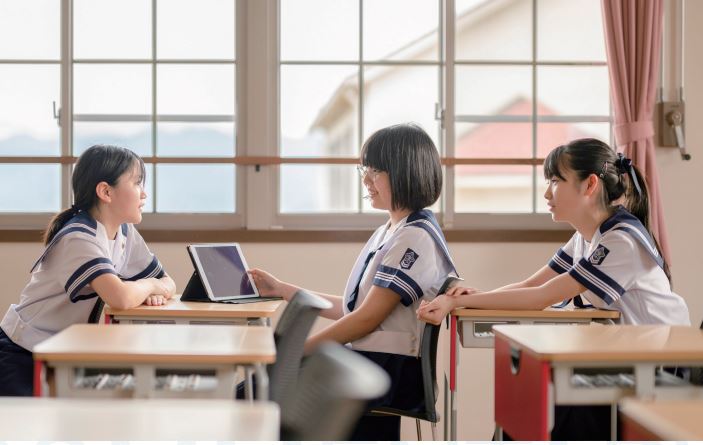 「キャリアスタディ山梨英和」では、中高6カ年の流れをつかんでいただき、中学生はこれからの進路指導の計画と自分自身の進路とをイメージしていただきたいと思います。また、高校生はこれまでのあゆみを振り返りながら、高校卒業後の進路実現に向けての目標作りに役立てていただきたいと思います。それぞれの学年が、発達段階に応じて適切な指導が与えられていることがわかると思います。中学1・2年生は、まだ進路と名前のついたロングホームルーム行事などは多くはありませんが、「英和の歴史」や「国際教育」、そして「自由研究」が自分の未来の可能性を広げる学びへとつながっていきます。また、中学3年から高校1年生にかけては、「進適指導」とともに高校カリキュラムを見越した進路指導を通して、中高の連携が生かされた進路指導が実感できると思います。さらに、高校2・3年生は、ロングホームルーム計画や模擬試験指導の中で多くの「進路指導」がなされ、進路指導と合わせてさまざまな「学習指導プログラム」も展開されていきます。6カ年の進路の流れをシミュレーションしてみてください。