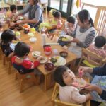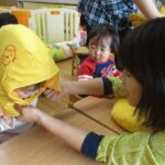 2018/08/08 メイプル 0,1歳児クラス 避難訓練の日は、いつもの帽子とは違うことをわかって先生たちの真似をして行動していました。 手遊びやダンスもまず先生の真似からです。 食事は先生たちに見守られながら、だんだん自分で食べられるようになりました。 前の記事を見る 記事一覧に戻る 次の記事を見る