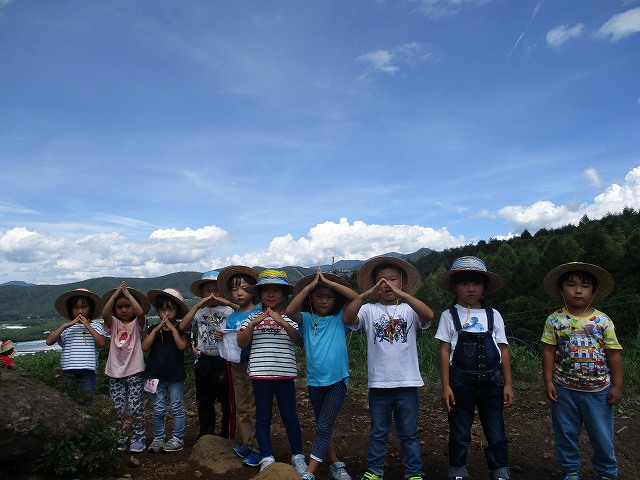 2018/08/08 メイプル 年長組夏期キャンプ 清里 キープ自然学校にて(7/14-15) 麦わら帽子に模様をつけて、キャンプの準備を進めてきました。 いよいよ出発です。2日間家族と離れて過ごすことは不安もありますがきっと楽しかった!と言って帰ってくることでしょう。 世界に1つだけの帽子 「行ってらっしゃ~い!」 南牧村農村文化情報交流館 グローブシアター(プラネタリウム)を見ました 屋上から、国立天文台のアンテナが見えます 獅子岩 獅子が口を開けて座っているように見えます 「山グループです」 「イェーイ!」 少し怖かったけれど登れました やっほー!」 八ヶ岳自然ふれあいセンターにて 笹笛作り 全員、よく食べました! おいしい夕食! 楽しかったキャンプファイヤー 前の記事を見る 記事一覧に戻る 次の記事を見る