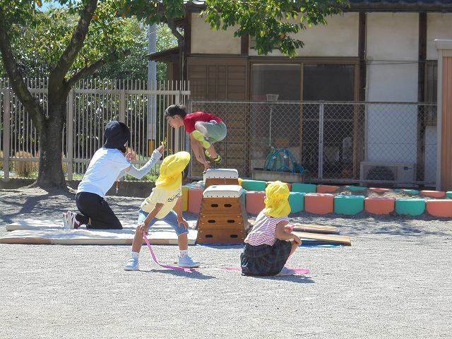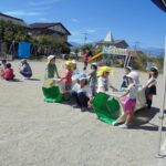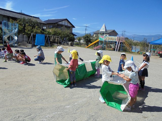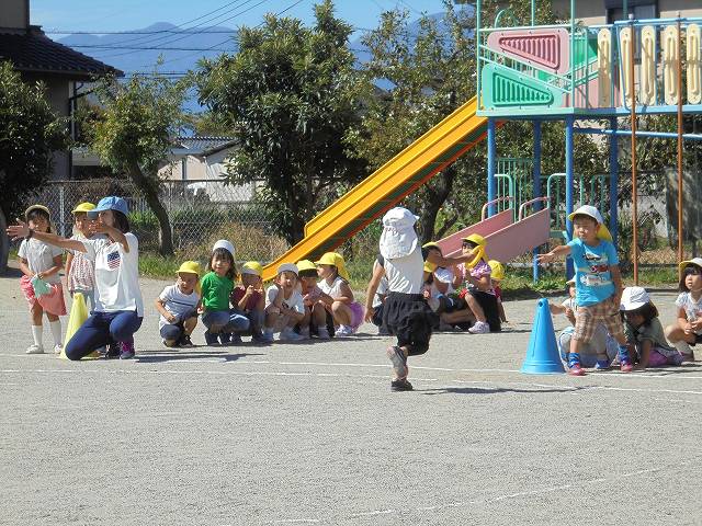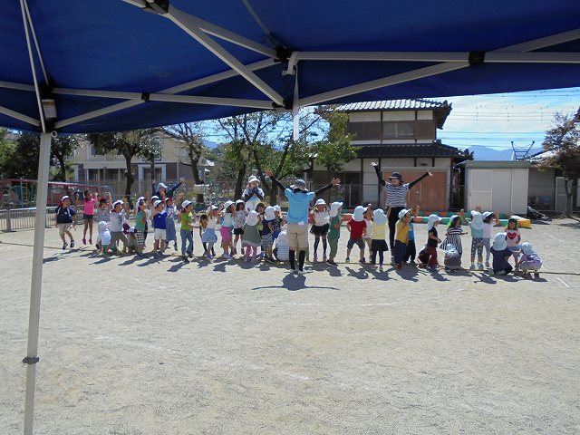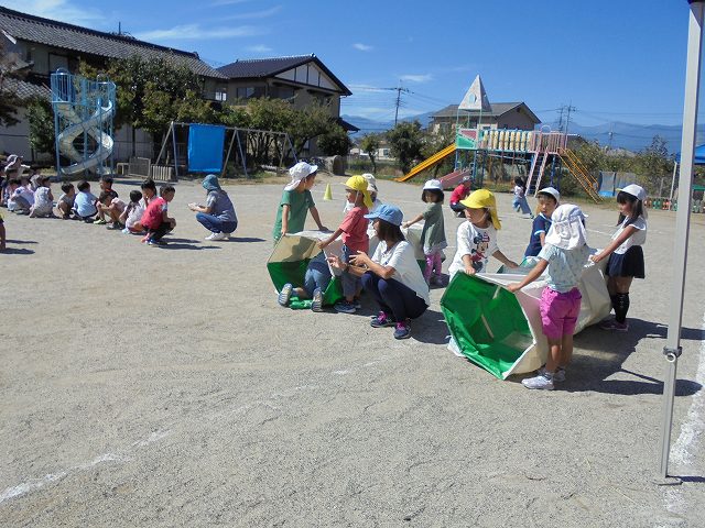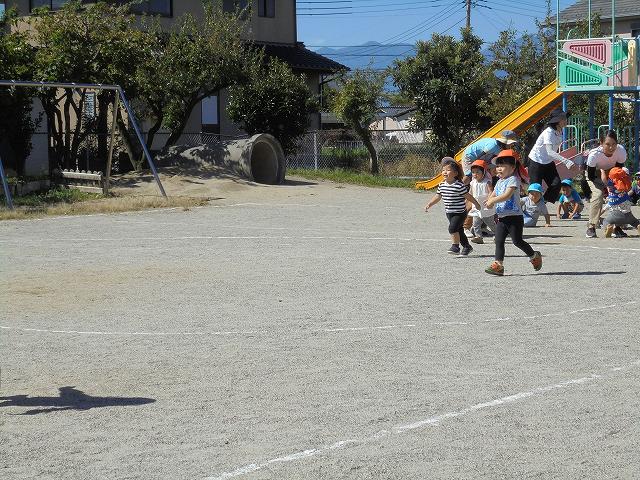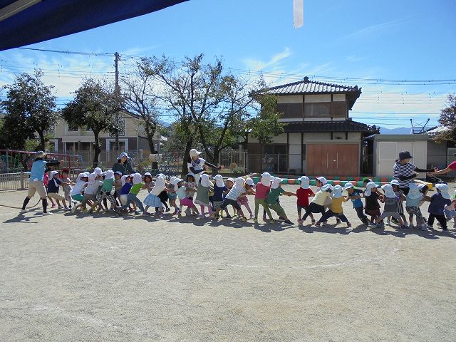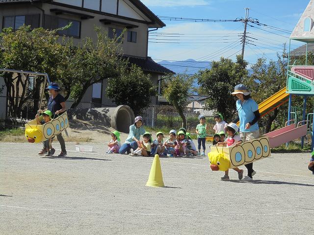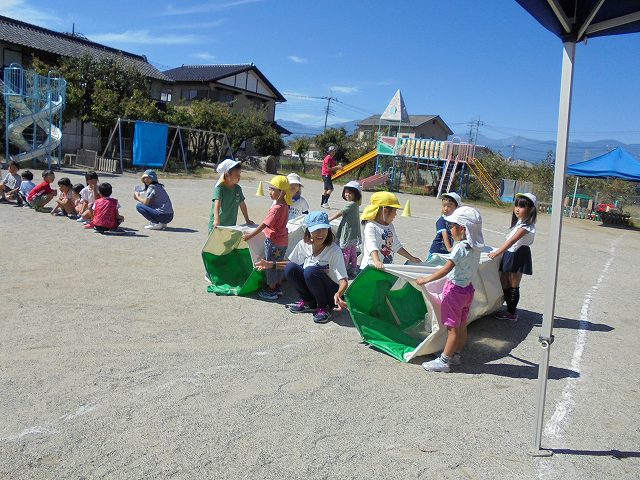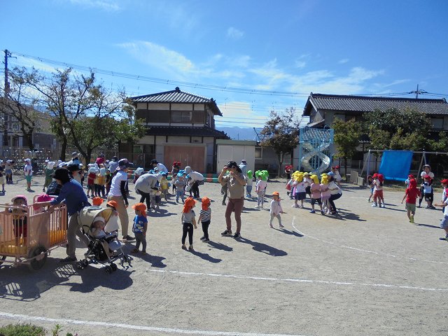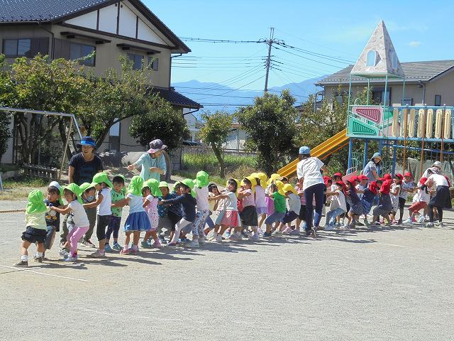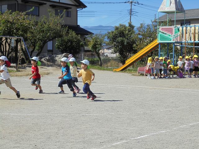 2018/10/24 メイプル 運動会前 もうすぐ運動会、当日は山梨英和大学で行います。 今日は全員でいろいろな競技や体操、ダンスをしました。 応援の園児たちも大活躍でした。(10/2) 未満児さんたちも一緒に 走るのが楽しい 競争というより走るのが楽しい未満児さんたち ゴールテープに向かって・・・ 応援の声も大きくなります 年中児さんはコーンを回ってタッチ 年中さんは丸いバトンで・・・ がんばれー! 年長児の障害物競走 年中児さんたちがお手伝いです 年少児さんたちの親子競技 今日は先生と一緒に 年長児はトラックリレー 前の記事を見る 記事一覧に戻る 次の記事を見る