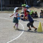 ・園の運動会は5日(土)に山梨英和大学体育館で行いますが、未就園児さんと一緒の運動会を園庭で行います。