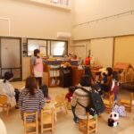 ・受付を済ませた後は、好きな遊びを一緒に楽しんだり、見学をしてお過ごしください。後半で集いをします。