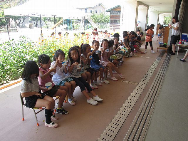 2014/07/19 メイプル 夏のおやつは・・・ 毎日暑いですが、夏しかできない水遊びやボディペインティングなどを楽しんでいます。 遊んだあとは、休息、水分補給、この季節のおやつは、かき氷です。 前の記事を見る 記事一覧に戻る 次の記事を見る