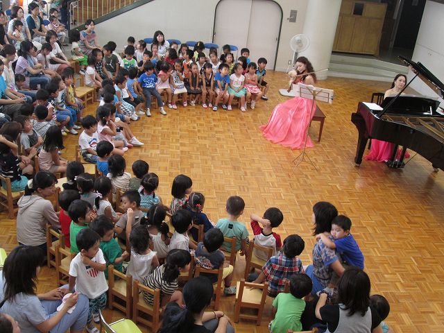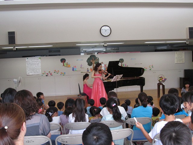 園児、卒園児、未就園児さん、ご家族一緒に、マヤ フレーザーさんによるバイオリン、早川恵美さんによるピアノ演奏を楽しみました。