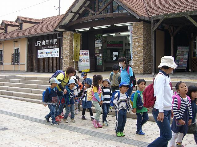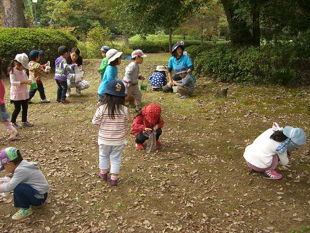 2014/11/25 メイプル 秋の遠足 10月31日、2歳児組、年少組はスクールバス、年中・年長組は電車で、山梨市の万力公園に行きました。 林の中では、木の実を集めたり切り株の年輪を観察したり、秋の1日を楽しんできました。 前の記事を見る 記事一覧に戻る 次の記事を見る