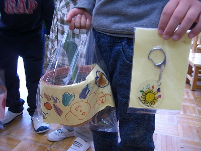 歌と言葉のプレゼント、秋から育てたチューリップの鉢植え、クッキー、キーホルダーもプレゼントしました。
