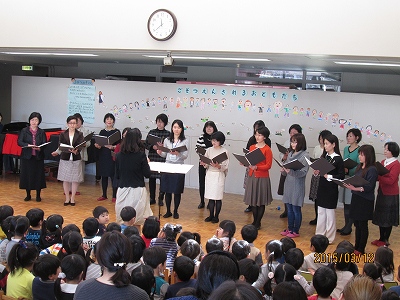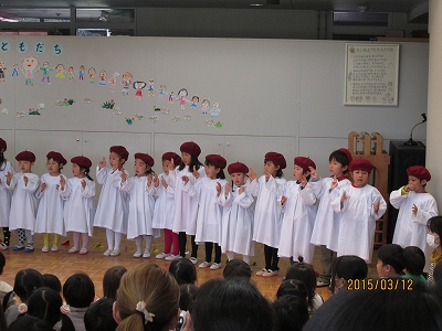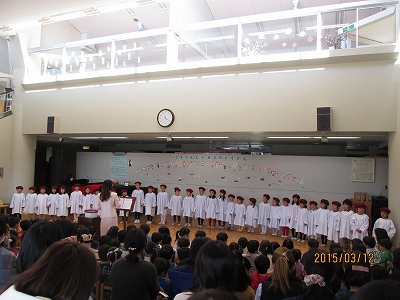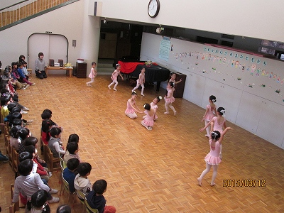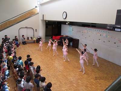 子どもたちのコーラスグループ“グリーンメイプル”の歌。卒園在園保護者のコーラスサークル“コールメイプル”による歌。若尾バレエ学園山梨英和幼稚園教室の子どもたちによる発表を楽しみました。