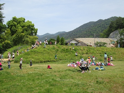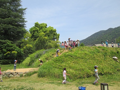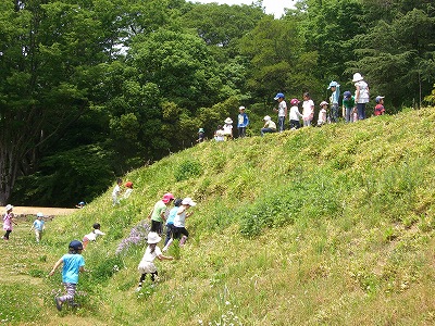 武田神社近くの遊歩道を歩いたり、芝生の広場で、花摘みをしたり虫さがしをしたりして楽しみました。