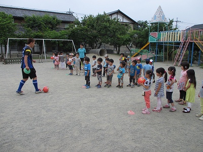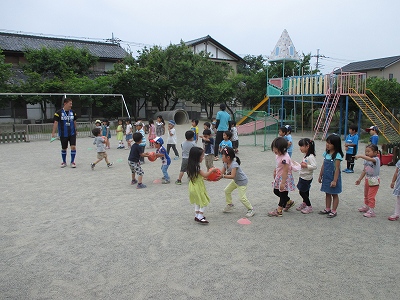 2015/05/31 メイプル サッカー教室 年中組 サッカー教室の日は、普段サッカーをしていない子どもたちも体験でき、楽しむ様子を見ることができました。 前の記事を見る 記事一覧に戻る 次の記事を見る