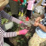 2015/11/19 メイプル さつまいも堀り 10月15日、暑い夏の間、草取りや水やりをがんばってきた畑に集まってみんなでさつまいも掘りをしました。 さつまいも掘りの後は、つるでリースを作りました。 クリスマスまでに飾りをつけて仕上げます 丁寧に作っています 花を飾る子どもたちもいます お母さまにも手伝っていただきました 全員が自分のリースを作りました ひと巻ひと巻頑張って作りました 前の記事を見る 記事一覧に戻る 次の記事を見る