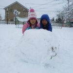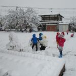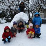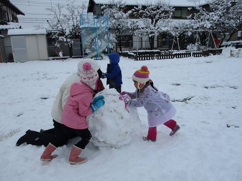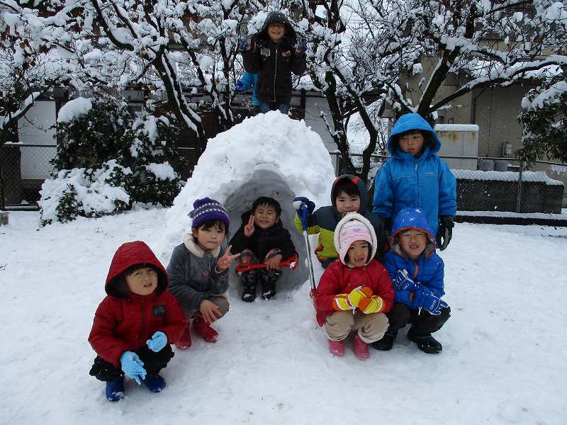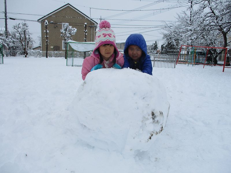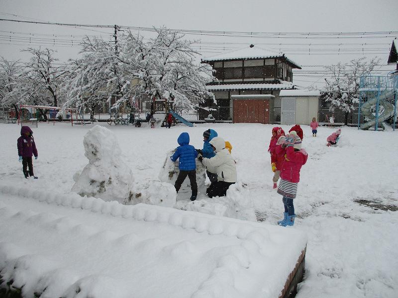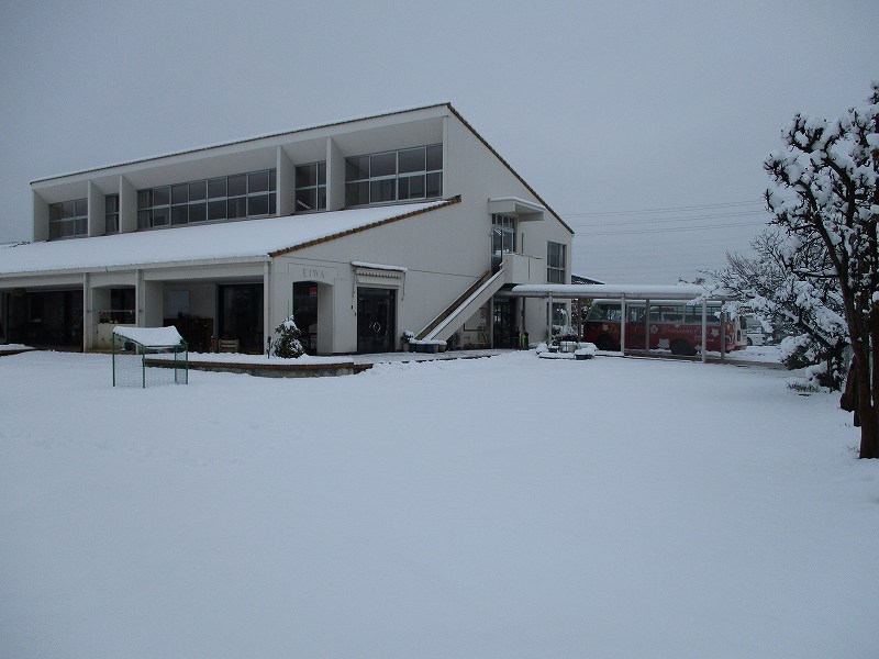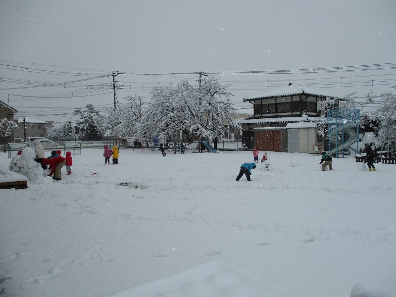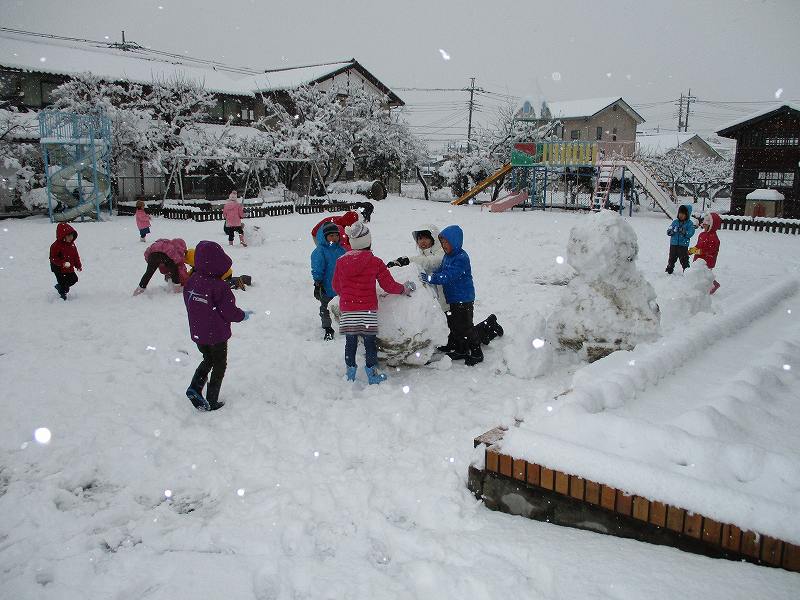 園庭一面真っ白な朝です。今日は雪遊びの一日でした。