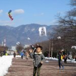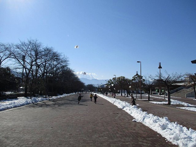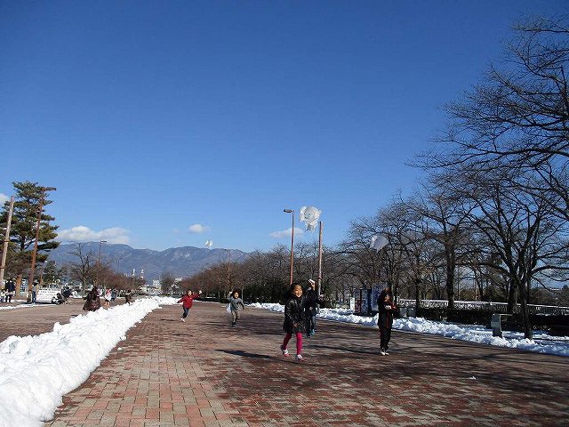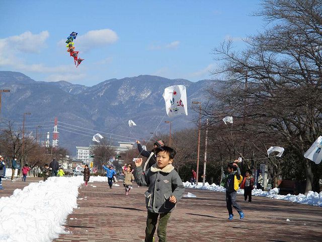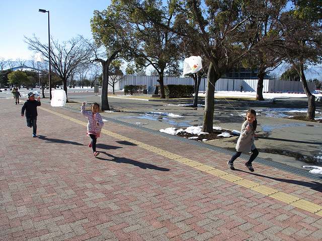 年長組の子どもたちが、それぞれ好きな絵を描いた凧で楽しんできました。