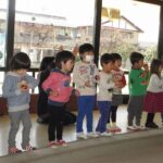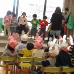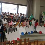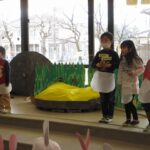 2016/03/01 メイプル もうすぐ『たのしい会』(発表会) 劇の中で使う物が、だんだん仕上がってきました。劇は、2歳児さんから年長児までが一緒に取り組み、そのほかに学年ごとの発表があります。 大きなカステラを作るところ 保育部の子どもたちは動物になっています できあがったカステラを分け合って・・・ おいしそうに食べる場面です 年少児もそろって並びます 年中児の好きな歌は、猫が主役です しっぽを付けます 年長児の合奏も、そろってきました 前の記事を見る 記事一覧に戻る 次の記事を見る