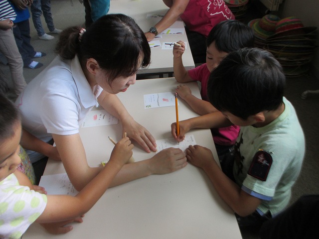 2016/08/09 メイプル 年長組夏期キャンプ 2日目 おはようございます! みんな元気です 力を合わせて布団の片づけ 順番に髪を整えて・・・ 朝の礼拝 元気にダンス 全部おいしいー お当番もいつものように 片付けも慣れてきました 森の中を歩いて 美しが森に到着 葉っぱの間からの光の模様は丸だったり、 そのまま葉っぱの影を映したり、いろいろです 吐竜の滝にて ご飯を食べたら帰るんだよね おいしい食事をありがとうございました 清里から家族にお手紙を書きました 投函して帰ります ただいまー! キャンプ2日目の朝、予定時間より1時間くらい早くから起きている子どもたちもいました。しっかり朝ご飯を食べて、2日目も楽しむことができました。 前の記事を見る 記事一覧に戻る 次の記事を見る