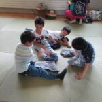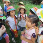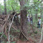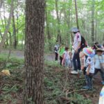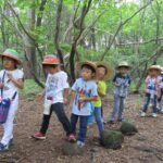 林の中を散策をしているときに、シカを見ました。他にも動物のフンを見つけたり面白い形の木や枝や、キノコの仲間やいろいろな物を見つけました。
