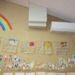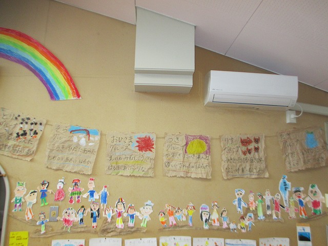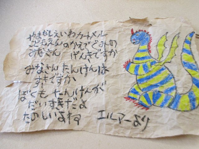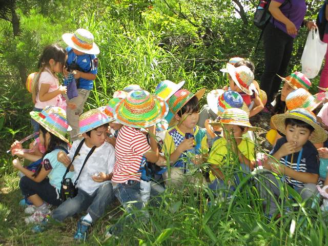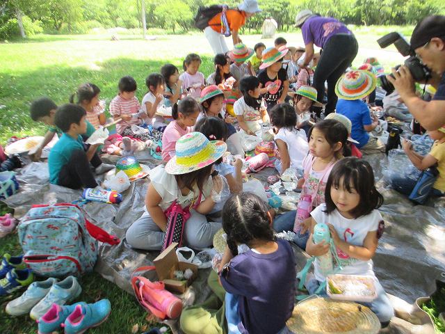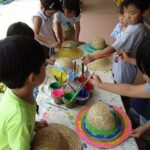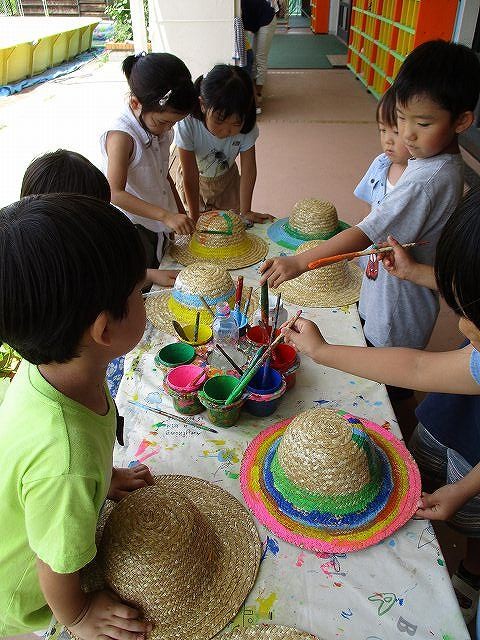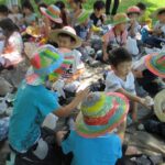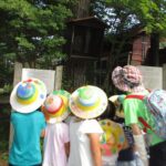 年長組の子どもたちは、一泊二日を清里で過ごしました。不安に思う子どもたちもいましたが、帽子に模様をつけたり、キャンプへのお誘いの手紙を読んだりしながら、気持ちを向けていきました。