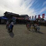年長組の子どもたちが旗を持って踊った『HERO』を、年中組の子どもたち以下、踊りたいという子どもたちが多く集まって、年長組の子どもたちのリードのもと、何度も楽しんでいました。