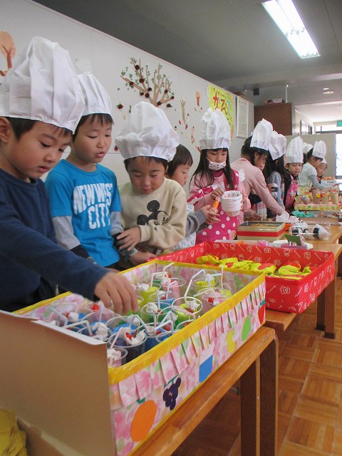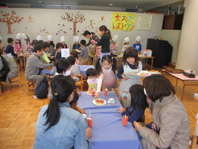 このごっこ遊びを通して、普段と違う子どもたちの姿も見ることができました。お客様との会話が大きい声だったり、てきぱきと料理をしたり、支持したり・・・・・これからも楽しみです。(11/9)