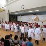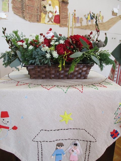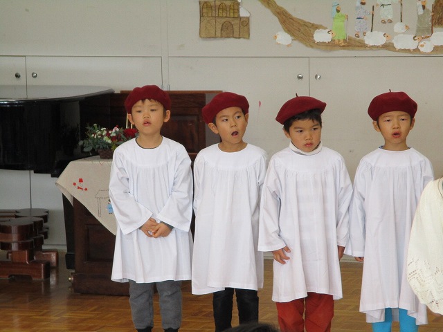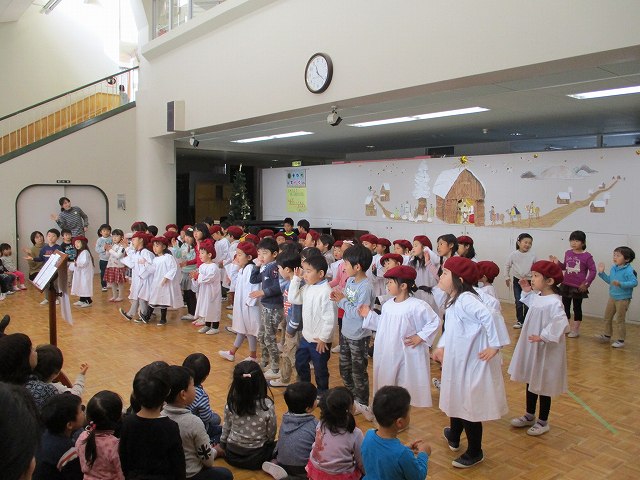 2016/12/23 メイプル クリスマス例会にて 12/1 共生・共育の会(保護者会)での礼拝の後、子どもたちの合唱グループ『グーリーンメイプル』の子どもたちによるクリスマスコンサートがありました。最後は皆で賛美ダンスを楽しみました。 卒園記念に刺繍したクロスが映えます 前の記事を見る 記事一覧に戻る 次の記事を見る