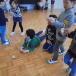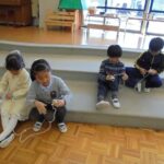 3学期の始まりは、お正月の遊び、伝承遊びなどを楽しみました。こま回しはコツをつかむまで、何回も何回も挑戦していました。