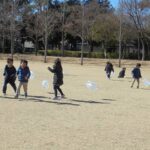 自分で好きな絵を描いたたこは、園庭でも、また、公園でも楽しんでいました。