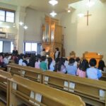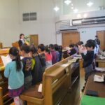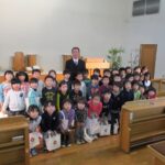2017/03/01 メイプル 教会礼拝 年長児たちが、教会で礼拝をしました。松木田先生のお話を聞いたり質問をしたり、CSのお部屋を見学させていただいたりして、良い体験でした。 前の記事を見る 記事一覧に戻る 次の記事を見る