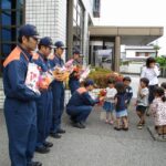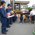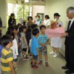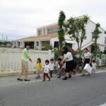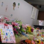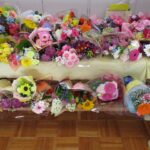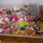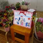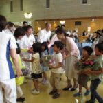 各家庭から持ち寄った花を前に礼拝を捧げた後、花を持って訪問しました。