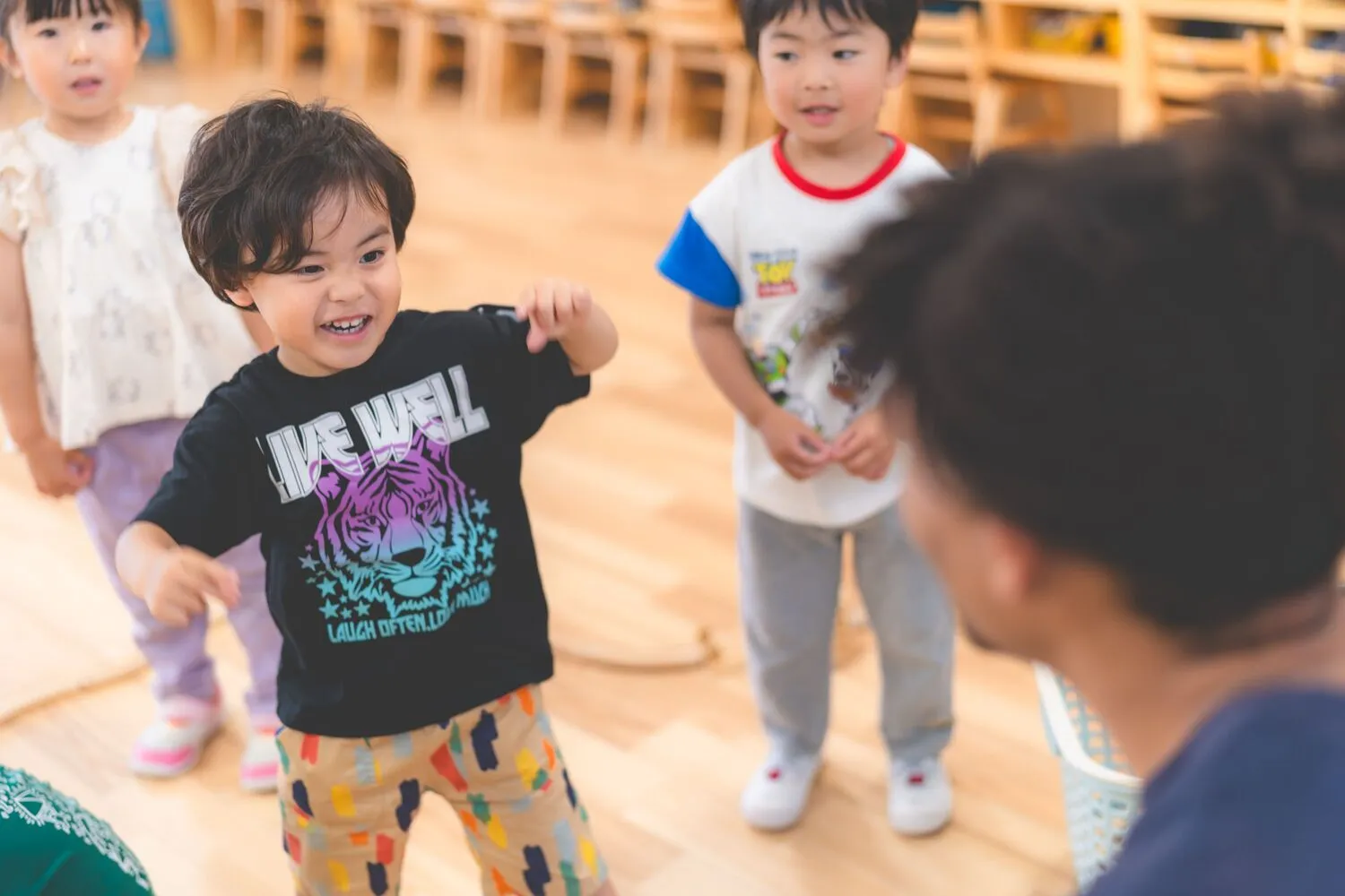 教室で、園庭で…お友だちと仲良く楽しく、元気いっぱい遊びます。