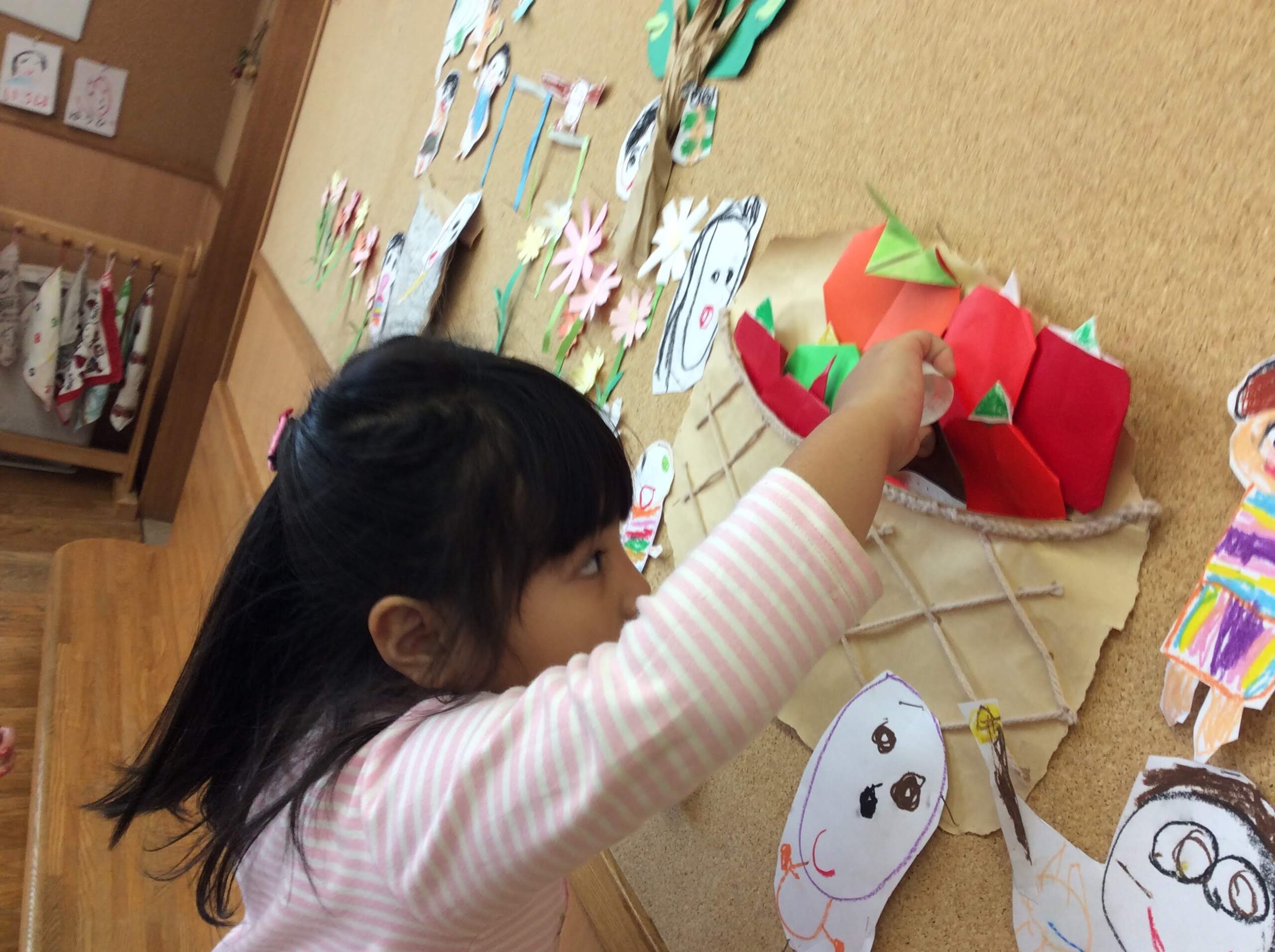 木々の葉の色の変化に秋の深まりを感じつつ、こども園では、実りと収穫の喜びの季節を過ごしています。