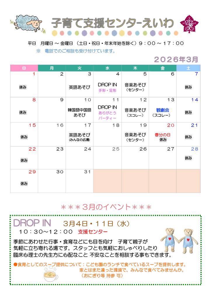 子育て支援センターえいわ 3月の予定