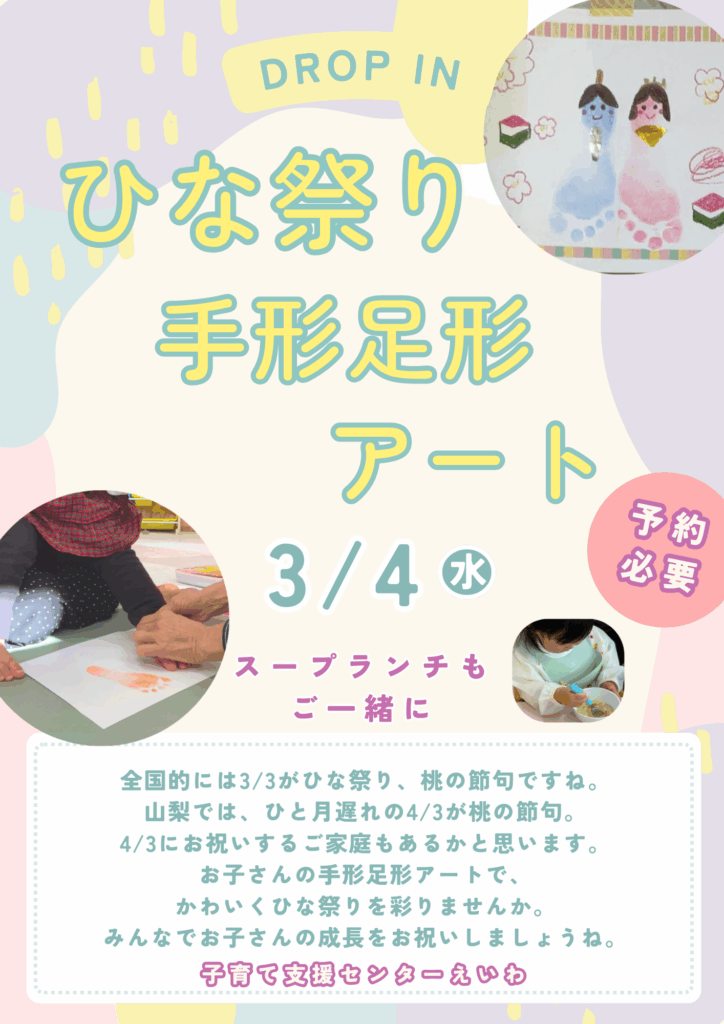 - 今年度最後のDROP IN 歌や手遊び絵本や…いろいろなことをして楽しみましょう!