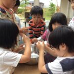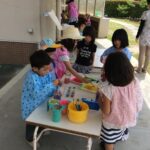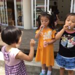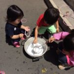 6月は、恵みの雨の季節です。プレストンこども園では、”楽しく水と親しむ”をテーマにシャボン玉や色水づくりをしています。
