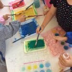 光による色の変化はもちろん、色が混ざり合う様子やシャボン液も作ったり、感覚的な遊びを通して子どもたちのイマジネーションを刺激します。