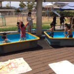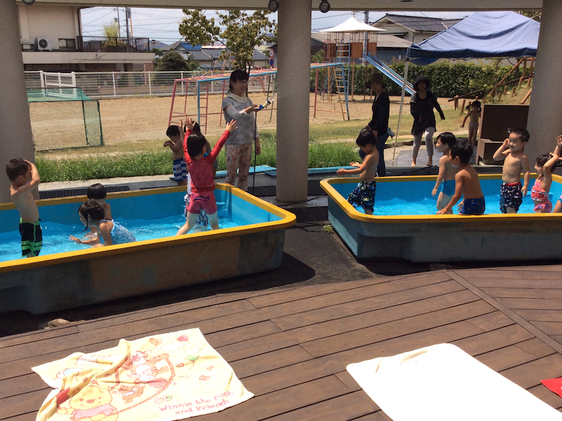 夏のひと時も、お家の方を笑顔で待つ子どもたちです。