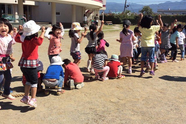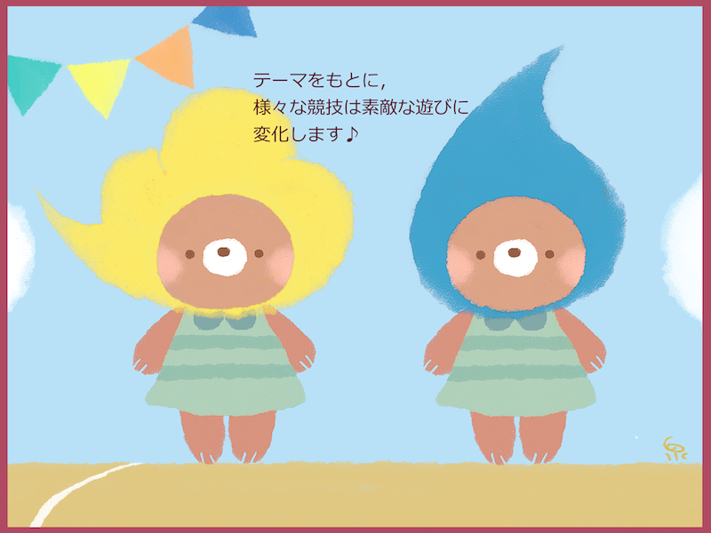 2015/10/08 こひつじ 運動会あそび1 いよいよ週末にせまった運動会。 運動会をテーマに,心も身体もたくさんつかって楽しむ園児達。 ”運動会”も園児達主体の行事ですから, 園児達の遊び心が沢山詰まっています。 気持ちいい風さん,おいで〜 強い風さん,おいで〜♪ しずくの仲間が増えました♪ ぽったん,ぽったん。 風になりきって,勝ったぞ〜♪ 次の遊びの準備は年長組のお兄さん,お姉さんが整えてくれます。かっこいい♪ 緊張の面持ち。 たくさん落ちているしずくを集めよう! 前の記事を見る 記事一覧に戻る 次の記事を見る