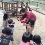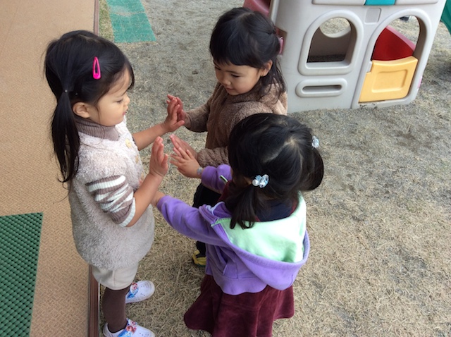 2015/12/22 こひつじ 秋の遊びの様子(保育部) ホサナ組の子どもたちも 深まりゆく秋を感じながら、 友だちと関わり合い、 楽しく過ごしてきました。 コーナー遊びの中で異年齢の友だちとの関わります。 木登りにも挑戦!! 先生とタッチ!こうした触れ合いも大切にしています。 友だち同士でもタッチ!うれしいね! 音楽に合わせてダンス〜♪ 魔女になって絵本の読み聞かせ。見事な集中力! 「はっけよーい、のこった!」お相撲ごっこも盛り上がっています。 見つめ合う・・・♪ 前の記事を見る 記事一覧に戻る 次の記事を見る