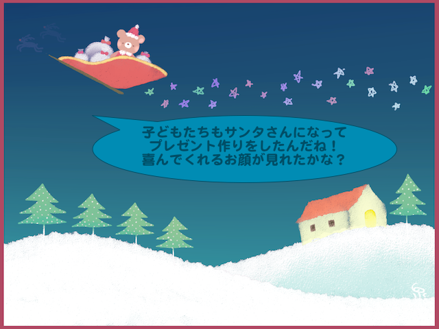 2015/12/24 こひつじ クリスマス前の子どもたちの生活(幼稚園部) クリスマスを待つアドヴェントの時を 心弾ませて過ごす子どもたちです。 クリスマス飾りやプレゼントを作ったり、 クッキングをしたり、 一つ一つの準備がうれしく、楽しい時となりました。 手先を動かして、じっくり取り組んでいます。 毛糸のポシェット作りコーナーも盛り上がっています。 12月のお誕生会では、図書委員会のお母様が「てぶくろ」のペープサートのお楽しみをして下さいました。 「アドヴェントお楽しみ会」では、ダンスやゲーム、ふれあい遊びを楽しみます。 この日はクッキングコーナーでおやつ作りを楽しんで、「アドヴェントお楽しみ会」でみんなで頂きました。 年少組の子どもたちがおうちの方へ用意したプレゼント。 年中組の子どもたちがおうちの方へ用意したプレゼント。 年長組の子どもたちがおうちの方へ用意したプレゼント。 前の記事を見る 記事一覧に戻る 次の記事を見る