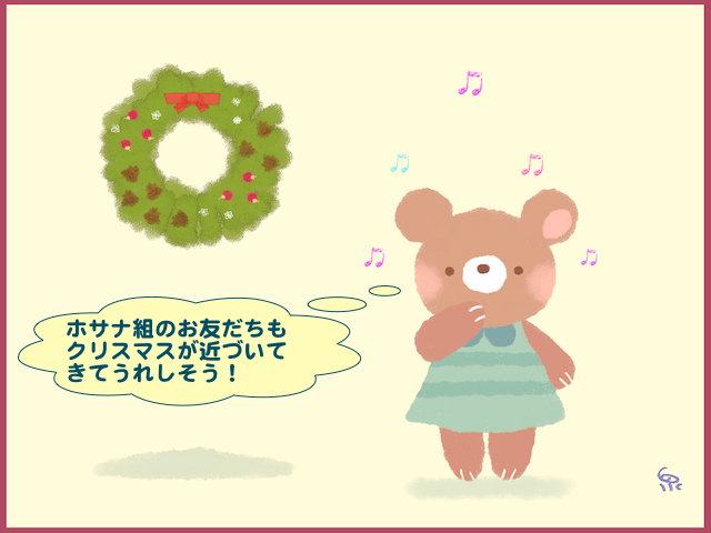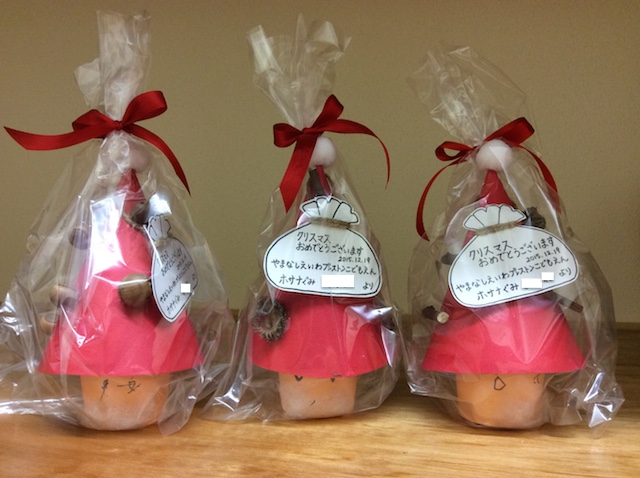 2015/12/24 こひつじ クリスマス前の子どもたちの生活(保育部) ホサナ組の子どもたちも クリスマスを迎える準備を 少しずつ進めてきました。 クリスマス礼拝ではおうちの方と共に クリスマスの喜びをわかち合う、温かいひとときとなりました。 クリスマスのお部屋飾りを作っています。 サンタさんのブーツが素敵に仕上がっていくね! クリスマスのにぎやかなお部屋になりました。 みんなで作って楽しいね! なんだかわくわくするね! ホサナ組の子どもたちがおうちの方へ準備したプレゼント。 保育部でもクリスマス礼拝が持たれました。 礼拝後、ご家族の方とクリスマスの音楽をかけて触れ合う時間を過ごしました。 前の記事を見る 記事一覧に戻る 次の記事を見る