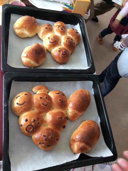 自分でこねた愛情たっぷりのパン。とっても上手に焼けました。