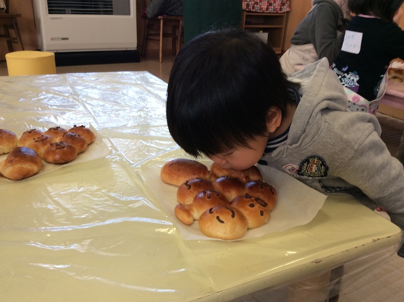 作りたてのパンは,みんなで味わい喜びもひとしおです。