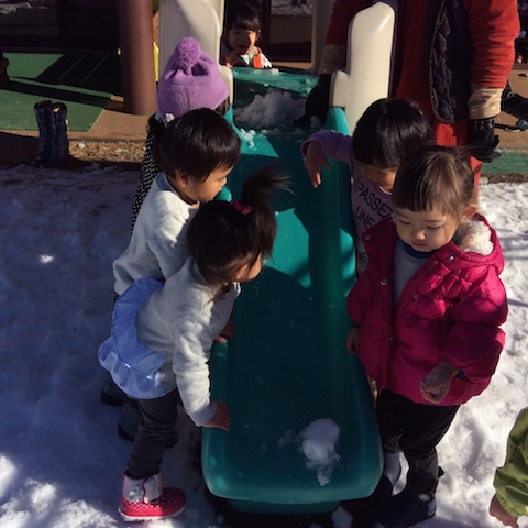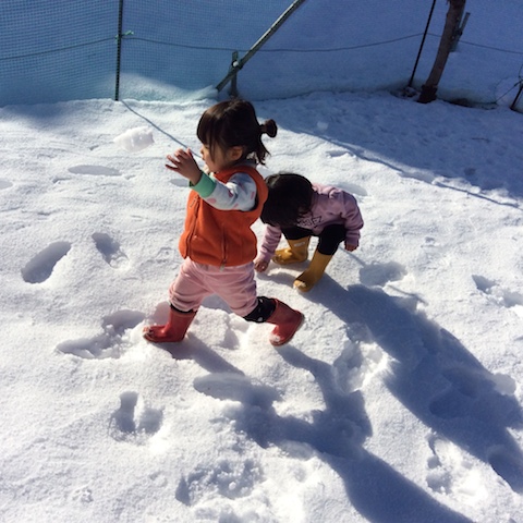 2016/02/10 こひつじ 3学期の遊びの様子(保育部)〜プレストンこども園〜 雪が降って、 保育部の子どもたちは大喜び! 早速、わくわくしながら、園庭に出掛けて行きました。 雪の上を歩くおもしろさに気がつきました。 たくさんの雪がうれしいね! 「いくよー!」「せーのっ!」 子どもたちが見ている世界の楽しさ♪ ふわふわかき氷、食べてみたいな〜 寒い冬も戸外に出て、元気いっぱい遊びます! 「いっぱーいあつめよう!」 「おにわがぜーんぶまっしろだー!」 前の記事を見る 記事一覧に戻る 次の記事を見る