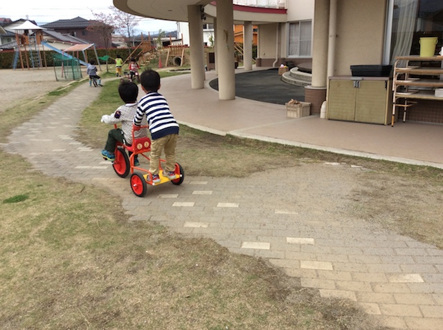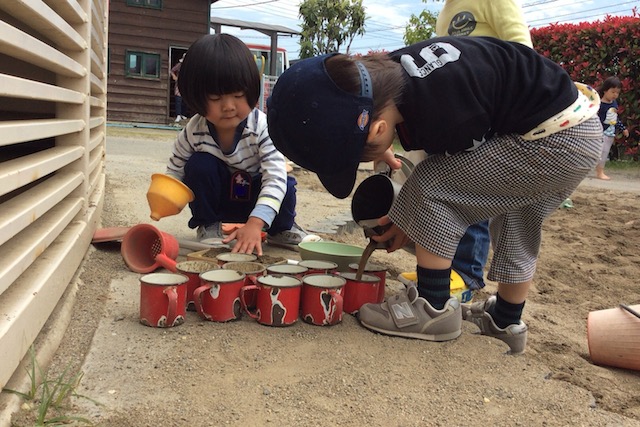 2016/05/02 こひつじ 新学期が始まりました。(山梨英和プレストンこども園) 2016年度がスタートし、子どもたちの元気な声が園内に響き渡っています。 幼稚園部の園庭では様々な活動が盛り上がっています。 あっちに行ってみよう!よいしょ!よいしょ! 上手にみんなに分けられるかな? 園庭での虫探しが盛り上がり始めています。 この春、新しい三輪車が登場!! オニを決めよう!じゃんけん、ぽん!友だち同士で遊びを進めています。 狙いを定めて〜!当たった! 葉っぱとお花を見つけて、クッキング中! ここにお水を塗って〜!と、本格クッキング。 大きい組のお姉さんが小さい組の友だちを楽しませています。 前の記事を見る 記事一覧に戻る 次の記事を見る