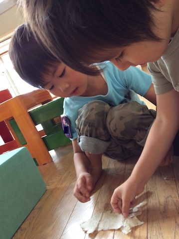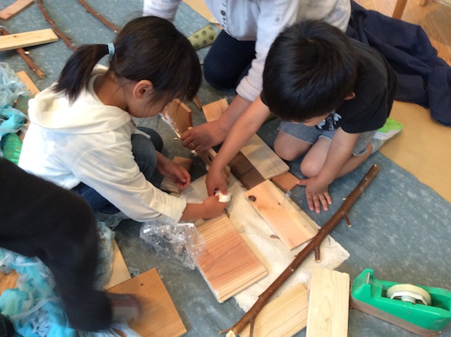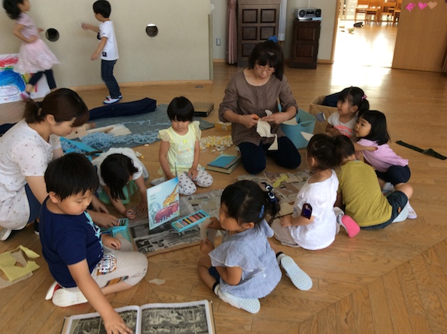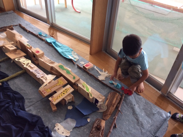約3週間に渡って、異年齢の子どもたちが混じってじっくり行ってきた「ノアのはこぶね」の作品が仕上がりました。
