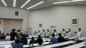 130名ほどの学生、教職員と共に、