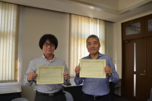 授与式の冒頭、学長から、感謝の言葉とともに今後のさらなる活躍への期待を込めた挨拶があり、表彰状が授与されました。