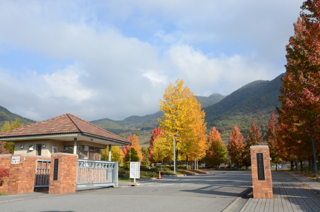 是山梨英和大学的正门。门上施有也被用作山梨英和学院校徽的枫树。