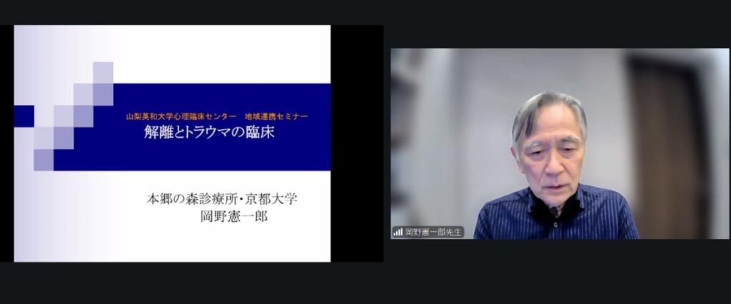 11月29日 (星期六),在线举办了2025年度心理临床中心地区合作研讨会。冈野宪一郎先生 (本乡森林诊所·京都大学名誉教授) 以“创伤与分离”为主题进行了演讲。